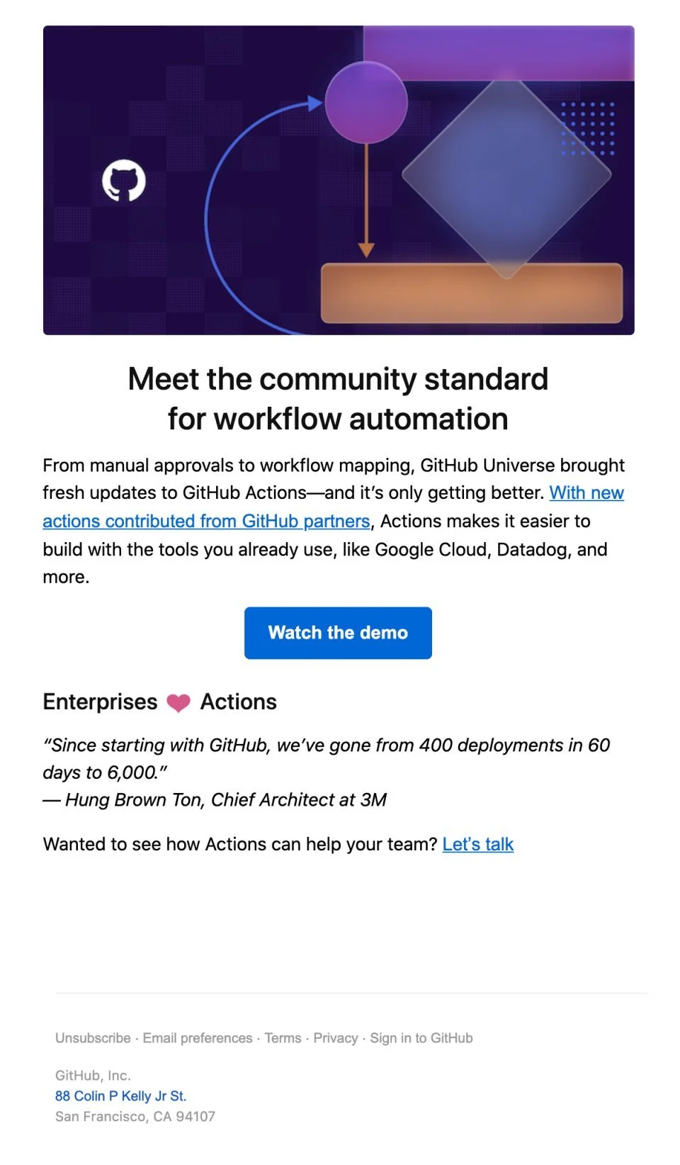 Capital One Bank - CD retention campaign Capital One - Investing direct mail campaign Capital One Bank - New York Times ad GitHub Universe email campaign GitHub Enterprise newsletter GitHub Advanced Security ebook The ReadME Project Women's History Month @ GitHub Vercel Product Newsletter Vercel Enterprise